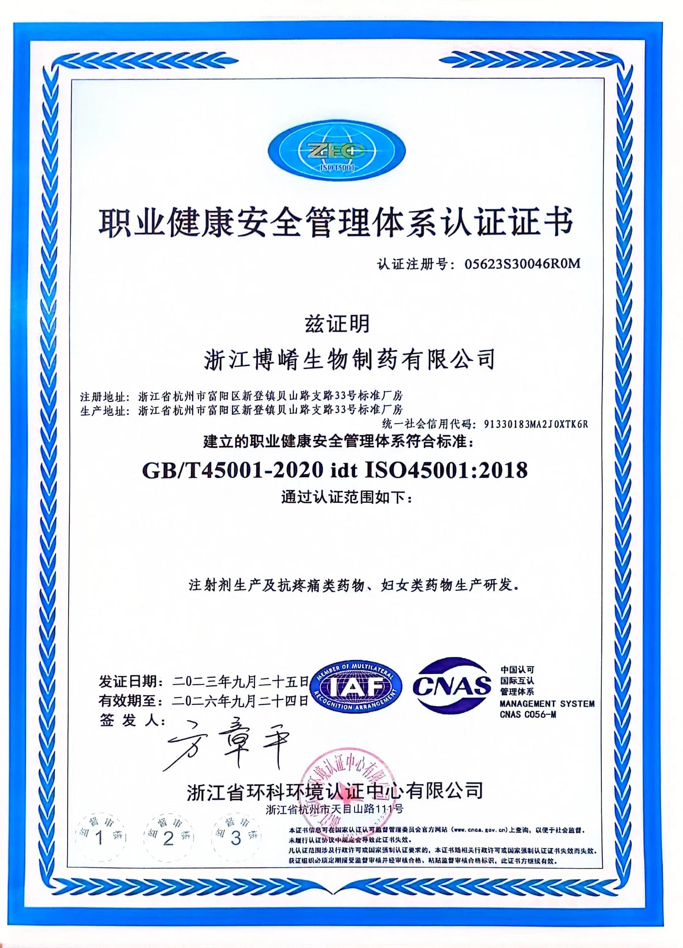 经过全体员工前期的努力工作,公司于9月25日迎来了浙江省环科环境认证中心有限公司专家组为期两天的审计,专家组对公司两年多的工作给予了高度评价,并一致认为:公司环境管理体系符合标准GB/T24001-2016 idt ISO14001:2015, 职业健康安全管理体系符合标准GB/T45001-2020 idt ISO45001:2018,于近日颁发认证证书。